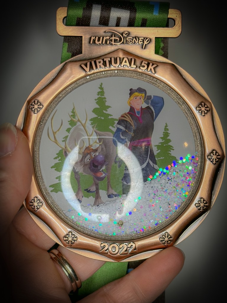 Back story. COVID 2019-2022. I had two options during this time when it came to being healthy. 1. I could use this time to stay active; long walks, lift weights, eat right,etc. Or, 2. Eat my weight in junk food and never get off the couch again. I mostly chose option 2 with some sprinkling of option 1. So, enter my come to Jesus meeting about getting healthier and signing up for the 2022 runDisney Virtual Series celebrating Frozen!